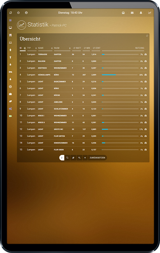 also eine direkte Übersicht wie stark/oft Ihre Lampen genutzt werden.